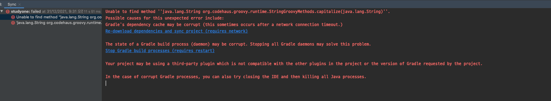 항상 그럴듯 개발환경은 어려운게 오류가 발생하는 거네여. 폴더 선택하여 오픈시 필요한 Dependency를 잘 가져오면 되는데 아래와 같은 오류가 발생하는 분들은 추가 설정을 해주시면 됩니다.