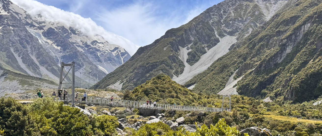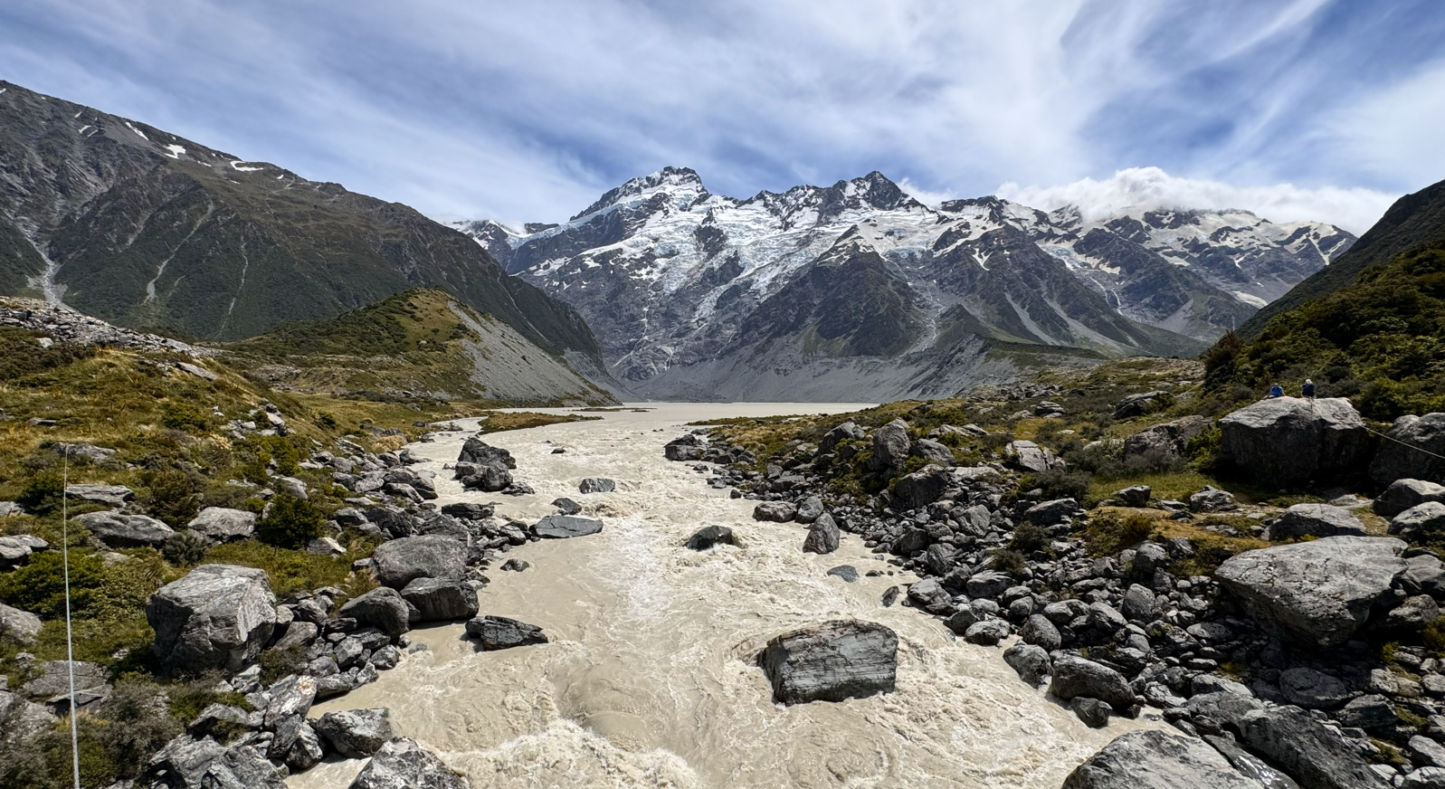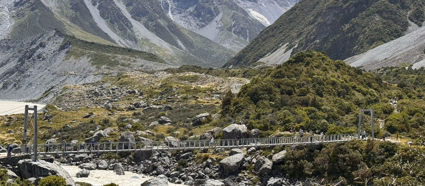 다리 위에서 바라본 마운트쿡의 봉우리와 계곡은 정말 장관이었습니다.