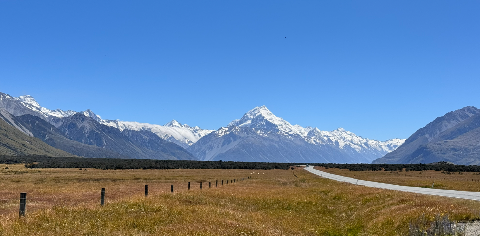 와나카를 떠나 마운트쿡으로 향하는 길은 이번 뉴질랜드 여행 중 가장 긴 운전 구간이었습니다. 하지만 창밖으로 펼쳐지는 풍경 덕분에 지루할 틈이 없었죠.
