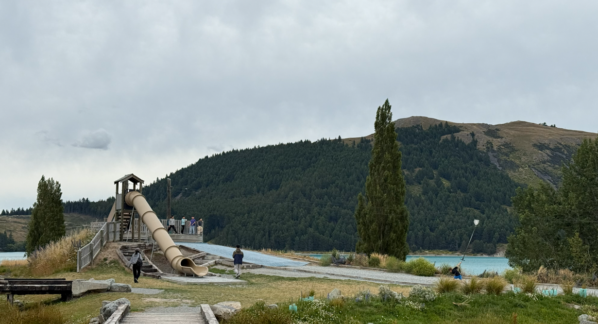 테카포 호수 옆 포스퀘어마트와 놀이터
