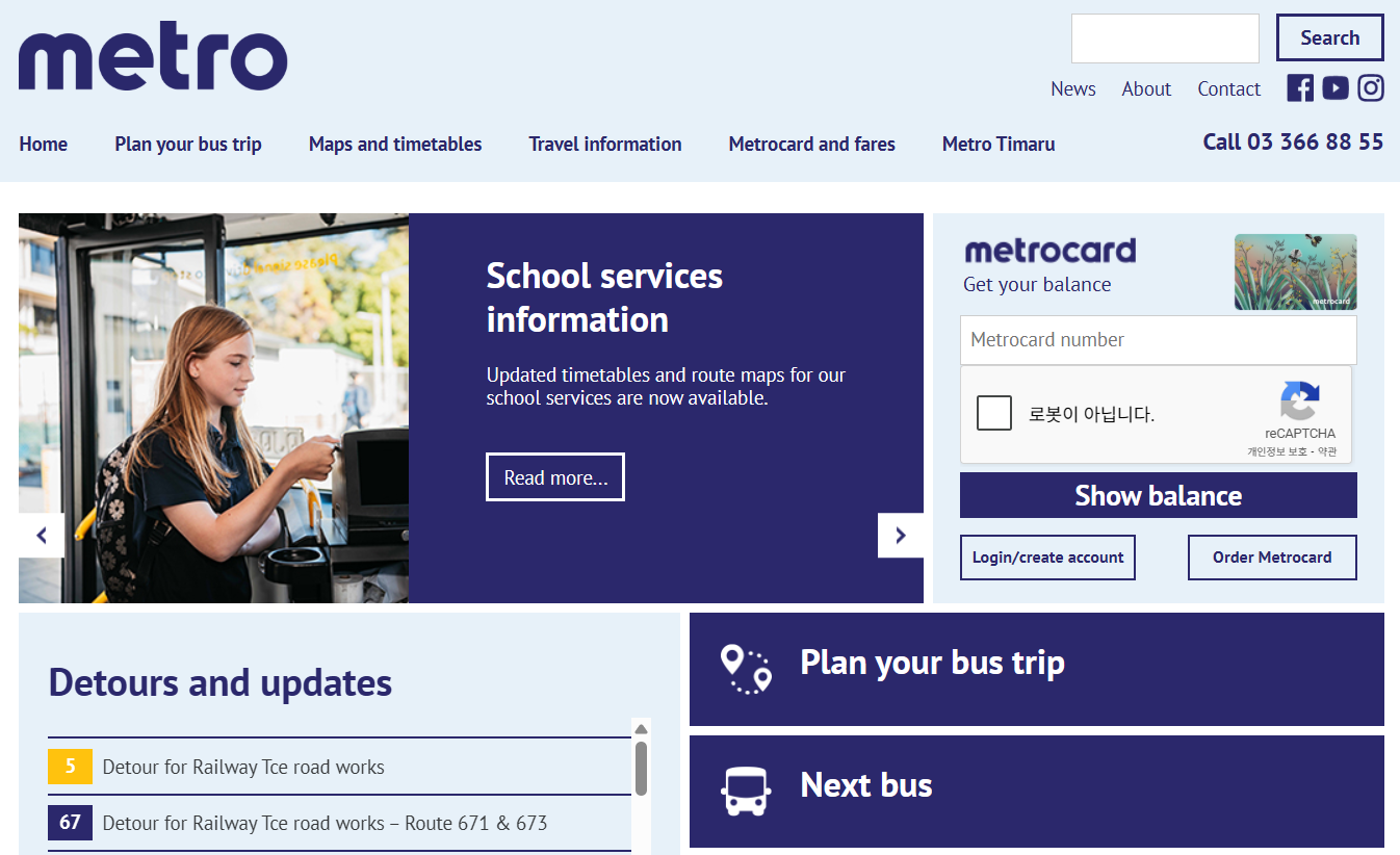 메트로카드 구매 장소: Christchurch Bus Interchange(중앙 버스 정류장) 내 메트로인포 서비스센터