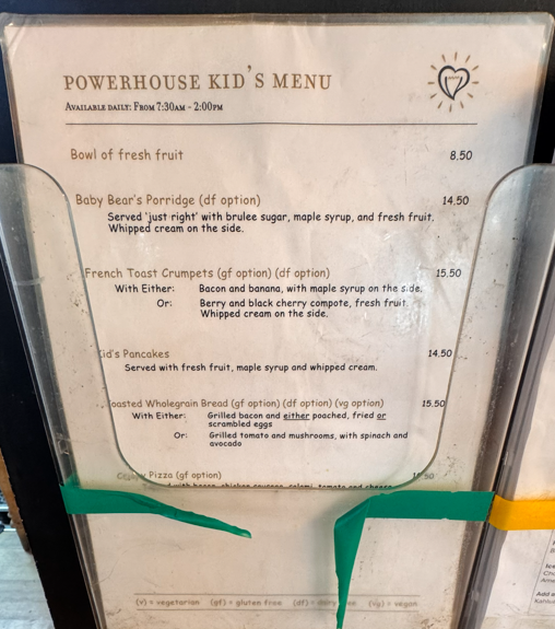 파워하우스 브런치 메뉴와 키즈메뉴들