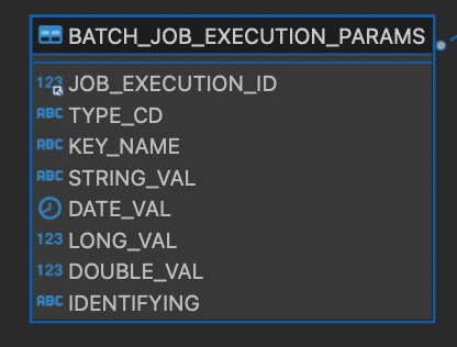 | JOB_EXECUTION_ID | BATCH_JOB_EXECUTION 테이블과 연결되는 키값 |